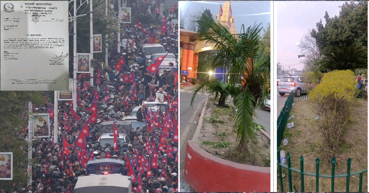 पूर्वराजा ज्ञानेन्द्र शाहको स्वागत गर्दा सडकमा फोहोर गरेको, आइल्यान्ड तथा रेलिङमा क्षति पुर्याएको भन्दै काठमाडौं महानगरपालिकाले राष्ट्रिय प्रजातन्त्र पार्टीलाई एक लाख रुपैयाँ जरिवाना तोकेको हो।