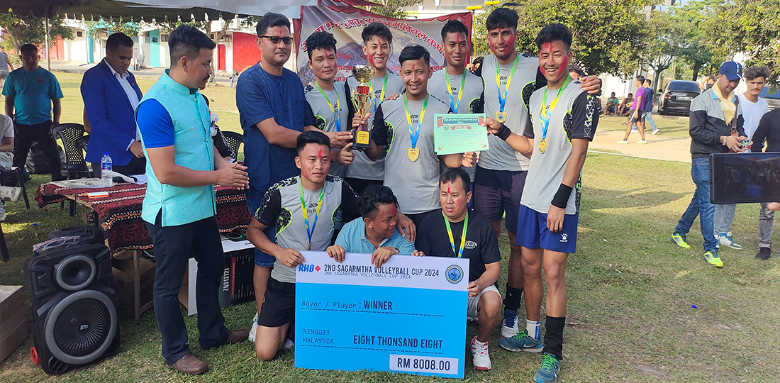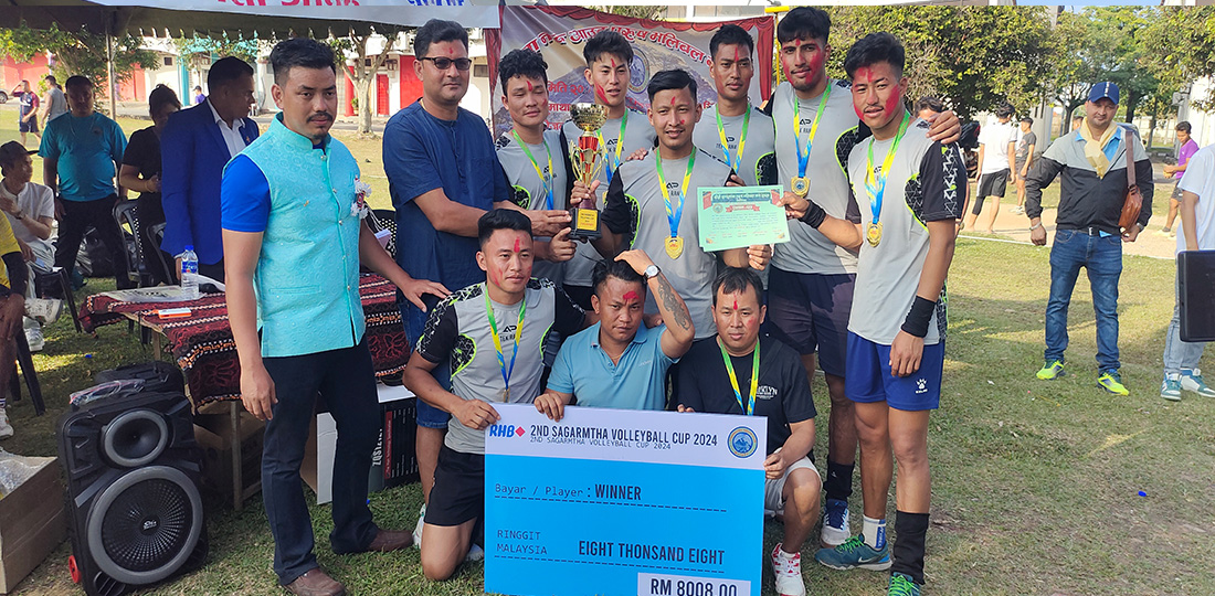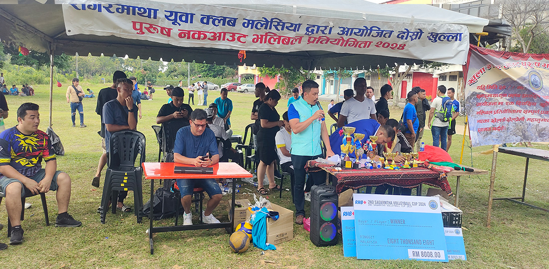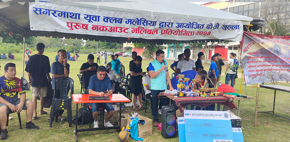 सगरमाथा युवा क्लव द्वारा आयाेजित मलेसिया ब्यापि दाेस्राे सगरमाथा खुल्ला पुरुष भलिबल प्रतियाेगितामा । आरएम ८००८ को प्रथम पुरस्कार, आरएम ५ ००५ दोस्रो पुरस्कार रहेको थियो भने तेस्रो पुरस्कार आरएम ३००३ रहेको थियो ।