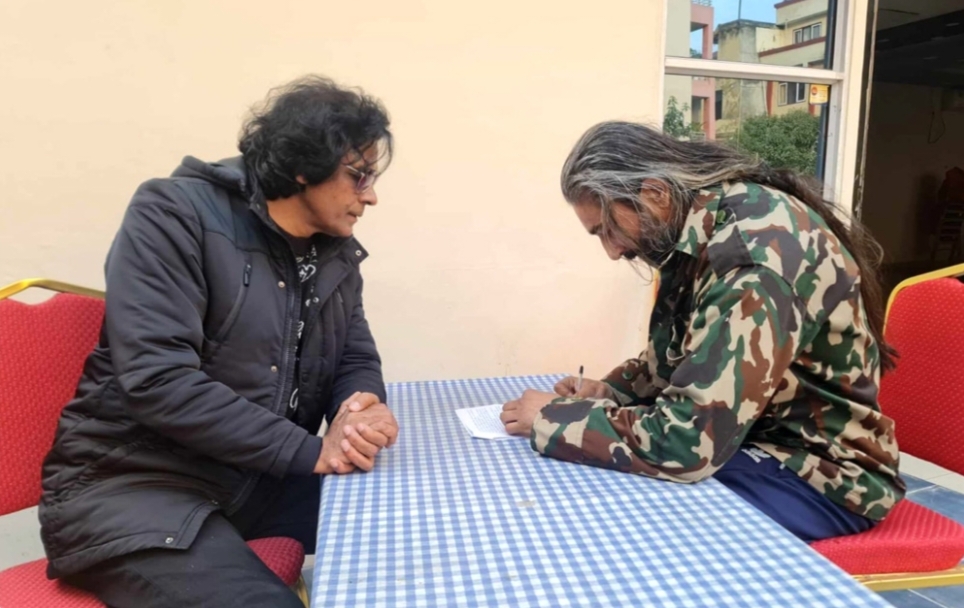 शनिबार काठमाडौंमा फिल्म सम्झौतामा हस्ताक्षर गर्दै अभिनेता विराज भट्ट (बायाँ) र कनिज कोइराला ।