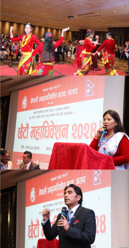 मञ्चका अध्यक्ष बुद्धिप्रसाद भण्डारीको सभापतित्वमा सम्पन्न महाधिवेशनमा नेपाली जनप्रगतिशील मञ्च प्रवास समन्वय समितिका सदस्य डिबि क्षेत्री, नेकपा माओवादी केन्द्र, प्रवास समन्वय समितिका अध्यक्ष ओम शर्मा, नेकपा माओवादी केन्द्र, प्रवास समन्वय समितिका सह-इन्चार्ज लक्ष्मण पन्त, एनआरएनए आईसीसीका अध्यक्ष आर.के शर्मा, कतारमा स्थापित विभिन्न संघ संस्थाहरूका प्रमुख तथा प्रतिनिधि, वैचारिक संस्थाका प्रमुख एवम् प्रतिनिधि, विशिष्ट सामाजिक व्यक्तित्वहरूको उपस्थितिसहित शुभकामना मन्तव्य रहेको थियो l बन्द र खुला सत्र गरी दुई चरणमा सम्पन्न महाधिवेशनको खुला सत्रमा मञ्चका उपाध्यक्ष राज देवकोटाले स्वागत मन्तव्य राखेका थिए l कार्यक्रममा बालकलाकारहरु आरोही थापा, प्रज्ञा न्युरे, समृद्धि सापकोटा, दिया सिङले स्वागत नृत्य पेस गरेका थिए
