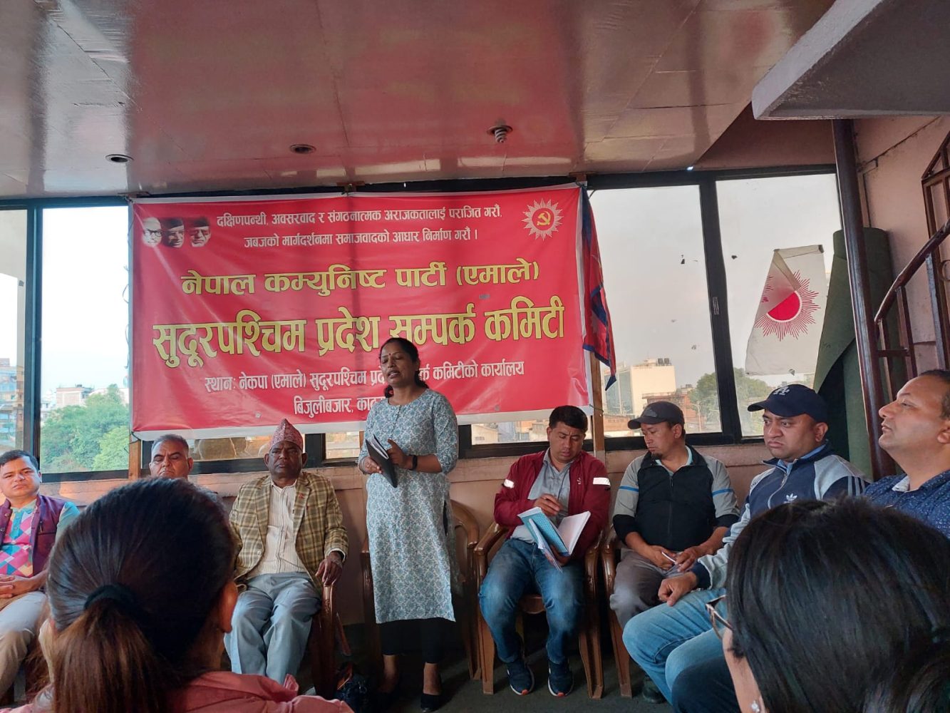 पार्टी केन्दृय कमिटी सदस्य तथा सुदुरपश्चिम प्रदेश सम्पर्क कमिटी ईन्चार्ज कल्पना थापा लगायतका अतिथिहरुको आतिथ्यता रहेको बैठकको सन्चालन कमिटीका सचिव खगेन्द्र साउदले गर्नुभएको थियो ।