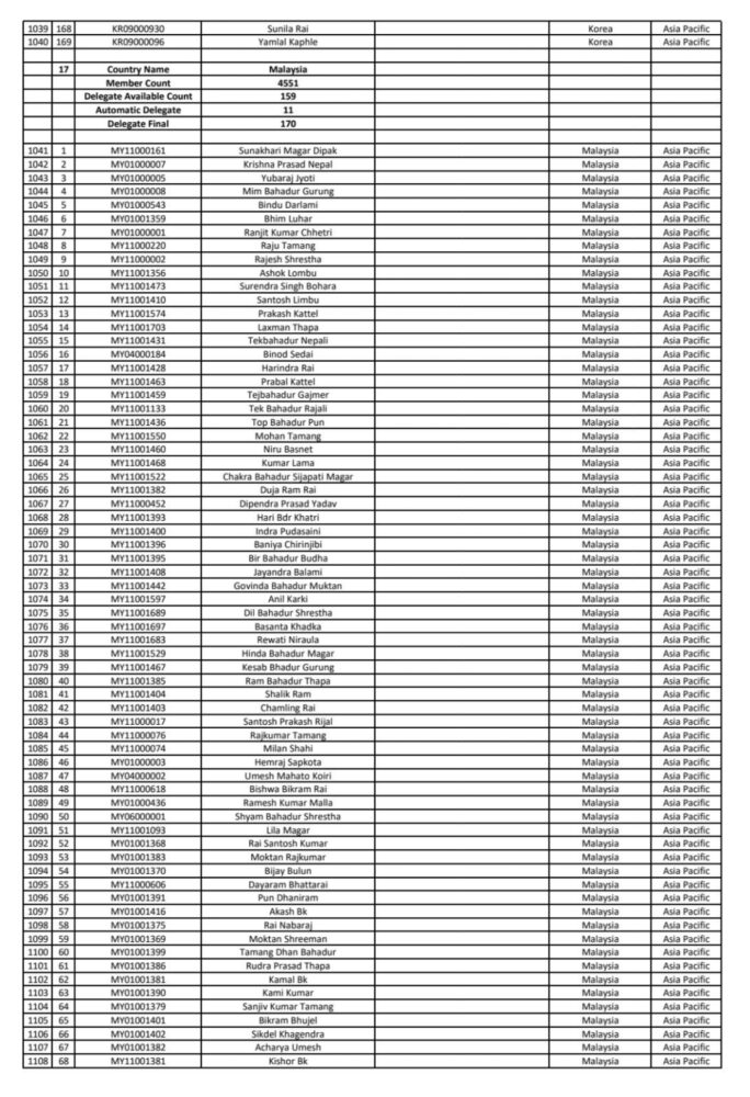 तर उता क्षेत्रीय समिति जोहोरका अध्यक्ष वेदना क्ष्रेष्ठले केन्द्र क्वालालम्पुरको अध्यक्ष बिनोद थापा लगायत कसैले पनि यस् विषयमा आफूसंग र क्षेत्रीय समितिसंग केहि सल्लाह नै नगरेको र क्षेत्रीय समितिलाई भोटरको लागी नमावली पठाईदिन कुनै पत्राचार समेत नगरिएकोले हामीले पत्र नपाएको र त्यसबारे हामी सबै अनबिज्ञनै रहेको स्पष्ट पारेकी छिन् ।