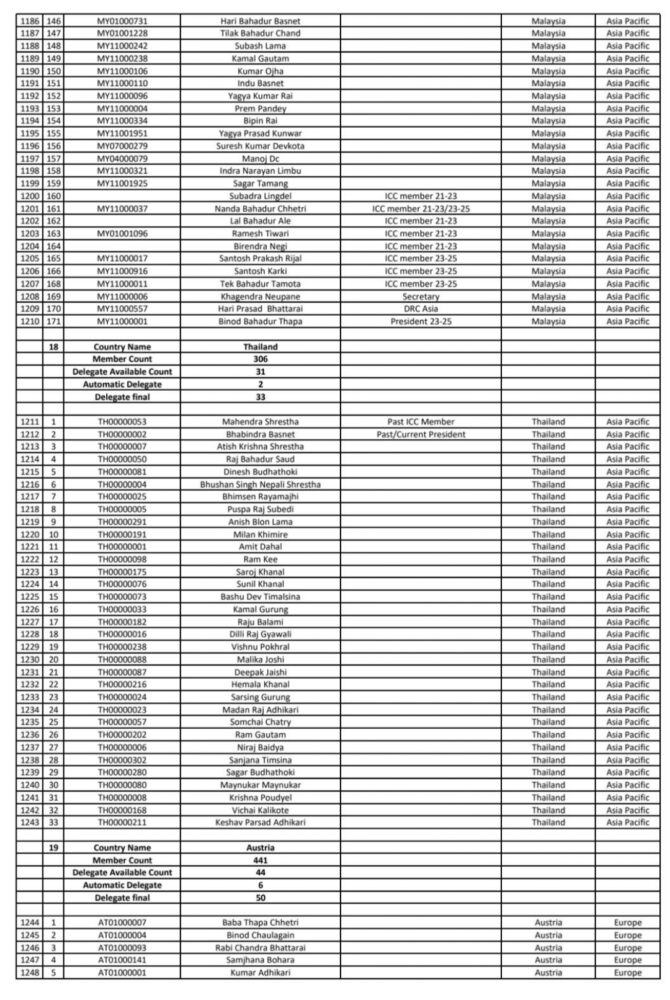 अध्यक्ष थापाले भने , “एनआरएनए एनसिसि मलेसियामा अहिले सन् २०२३-२०२५ कार्यकालको नयाँ समितिमा पनि अधिकाँस जसो पहिले सन् २०२१ – २०२३ कार्यकालकै पदाधिकारी साथीहरु रहेको र तिनै सबै साथीहरुसंग संस्थागत सल्लाह गरेरै मलेसियाबाट आईसिसिको ११औं महाधिवेशनको लागि भोटरको नमावली अनुमोदन गरि पठाइएको बताए ।