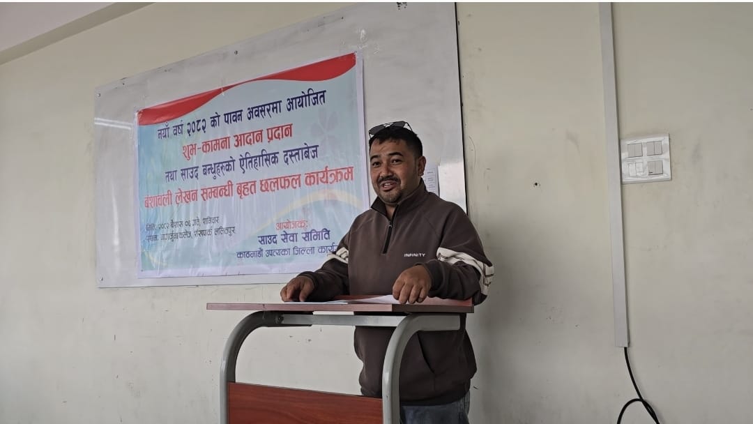 काठमाडौं । ०६ बैशाख, २०८२ साउद सेवा समिति काठमाडौ उपत्यका जिल्ला कार्यसमितिले नयाँ वर्ष २०८२ को अवसर पारेर शुभकामना आदानप्रदान तथा साउद बन्धुहरुको ऐतिहासिक दस्तावेज बंशावली लेखन सम्बन्धि बृहत कार्यक्रम भव्य रुपमा सम्पन्न गरेको छ । काठमाडौ उपत्यकामा विभिन्न पेशा र व्यवसायमा आवद्द साउद समुदायका करिब ७० जना व्यक्तित्वहरुको सविशेष उपस्थिति रहेको कार्यक्रम साउद सेवा समिति काठमाडौ उपत्यका जिल्ला कार्यसमितिका अध्यक्ष कम्मान सिं साउदको अध्यक्षतामा सम्पन्न भएको छ ।