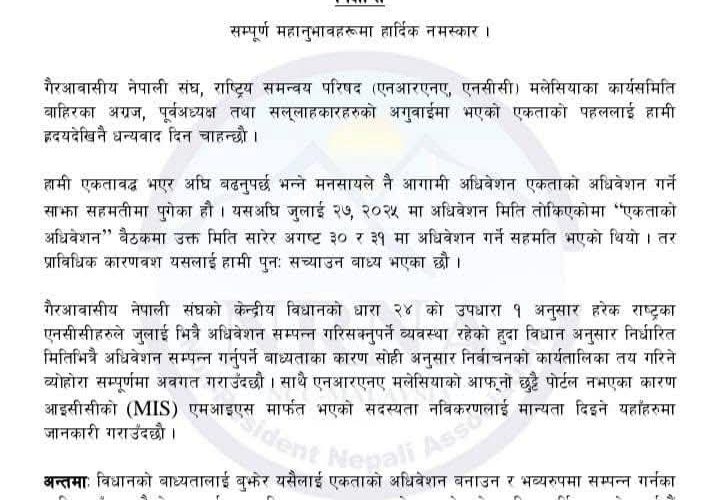 २, गैर आवासीय नेपाली संघ मलेसिया केही निश्चित ब्यक्ति हरु को मात्रै संस्था हो?