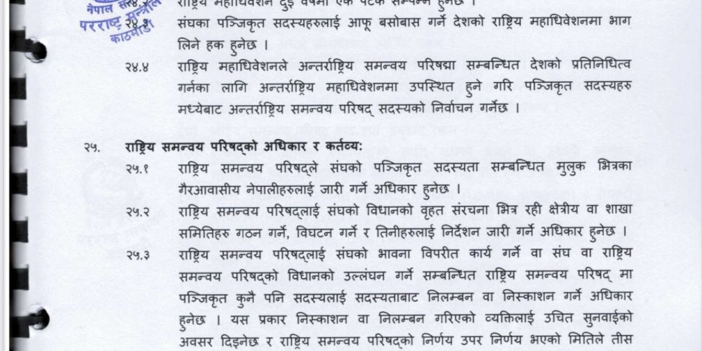 विधान अनुसार प्रत्येक राष्ट्रिय समन्वय परिषद को राष्ट्रिय महाधिवेशन अन्तर्राष्ट्रिय महाधिवेशन आयोजना हुने वर्षको जुलाई महिना को १ देखि ३१ तारीख भित्र अनिवार्य रूपमा सम्पन्न गर्नुपर्ने व्यवस्था रहेको छ।