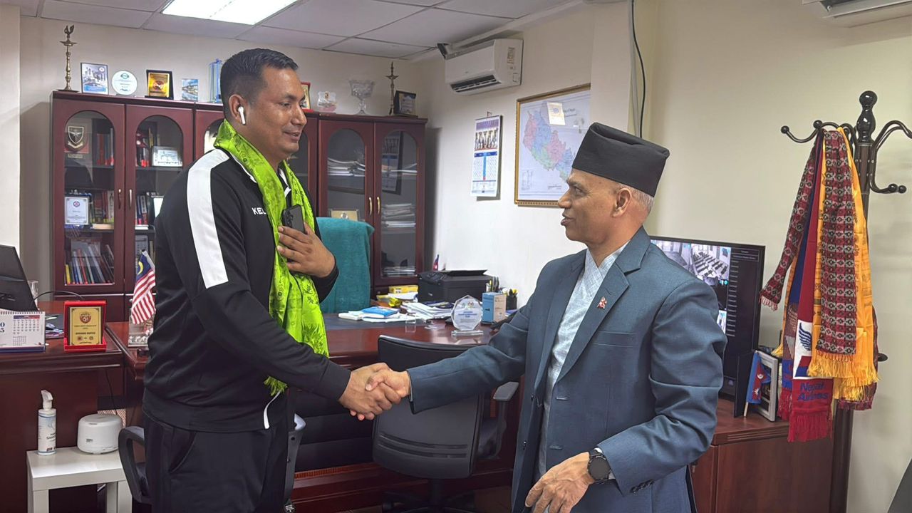 नेपाली फुटबल एसोसिएसन र हिमालयन एकेडेमी मलेसियाका अध्यक्ष सन्तोष भट्टको समन्वयमा दूतावास पुगेका खेलाडीहरूलाई राजदूत नेत्र प्रसाद तिमल्सिनाले आत्मीय स्वागत गर्दै उनीहरूको उल्लेखनीय प्रदर्शनप्रति प्रशंसा व्यक्त गरे।