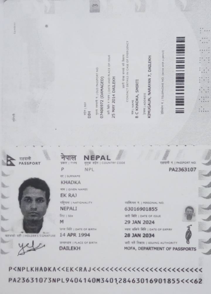 क्वालालम्पुर, मलेसिया — मलेसियामा रोजगारीको सिलसिलामा पुगेका नेपाली नागरिक EK RAJ KHADKA हाल गम्भीर मानसिक तथा शारीरिक समस्याबाट पीडित भई संकटपूर्ण अवस्थामा पुगेका छन्। उहाँलाई तत्काल उपचार र नेपाल फिर्ता गराउन नेपाली दूतावास तथा सम्बन्धित निकायहरूलाई आपतकालीन सहयोगका लागि अपिल गरिएको छ।