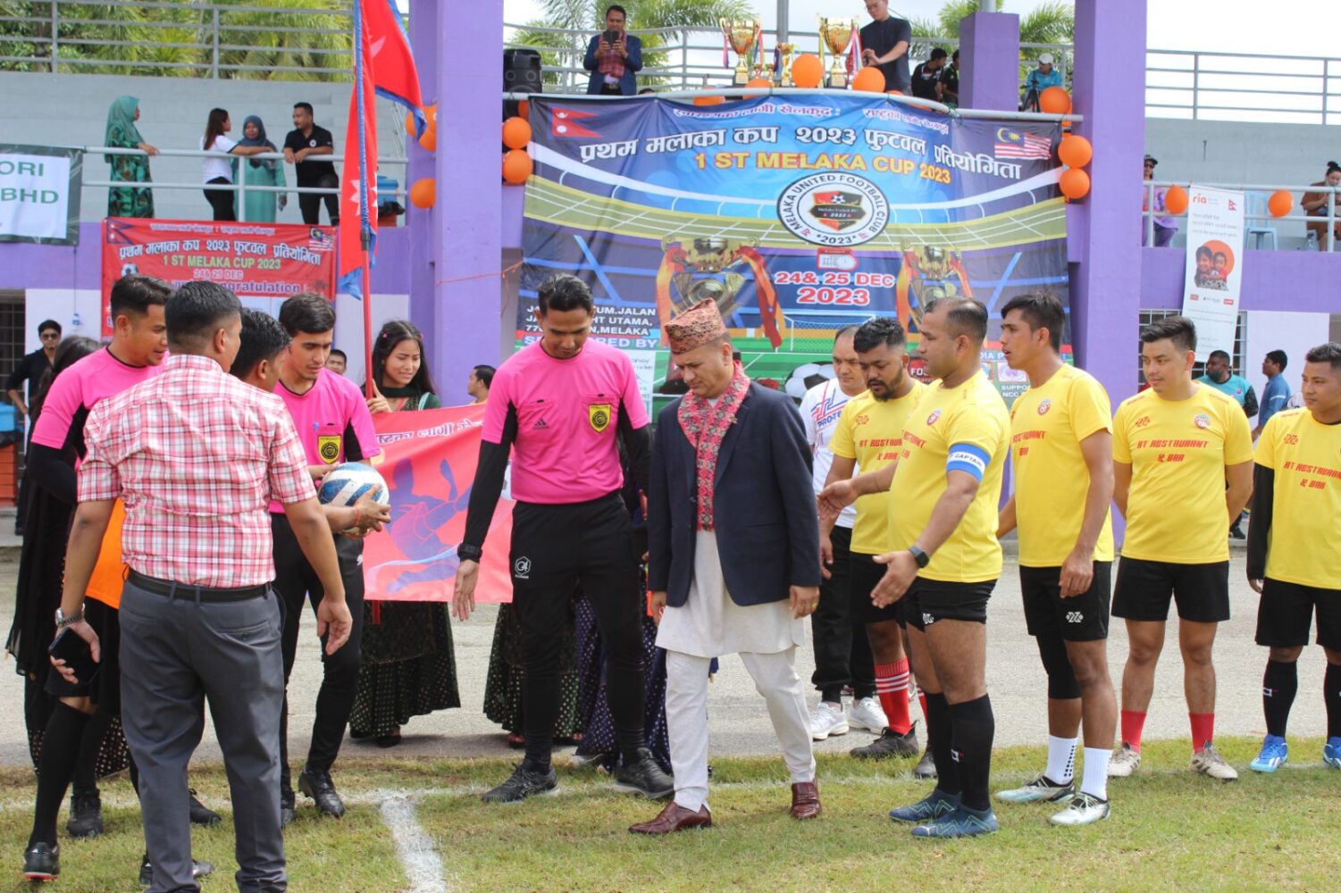 मलेसिया : मलका युनाइटेड फुटबल क्लबद्वारा आयोजित प्रथम मलका कप २०२३ हिजाे २०२३ डीसेम्बर २३ बाट सुरु भएको छ । उमेश महतोकाे अध्यक्षता, मलेसियाका नेपाली राजदुत डिल्लीराज पौडेलको प्रमुख आतिथ्यमा प्रतियोगिताको शुभारम्भ भएको हो ।